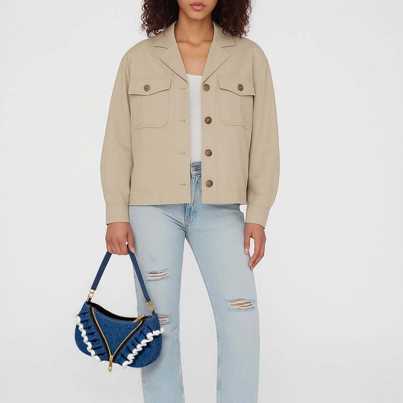 This Chic and Recycled Denim Shoulder Bag with a Unique Ruffled Design is a perfect blend of fashion and sustainability. Made from upcycled denim, it gives a second life to old jeans, turning them into a stylish, eco-friendly accessory that you can carry with pride.